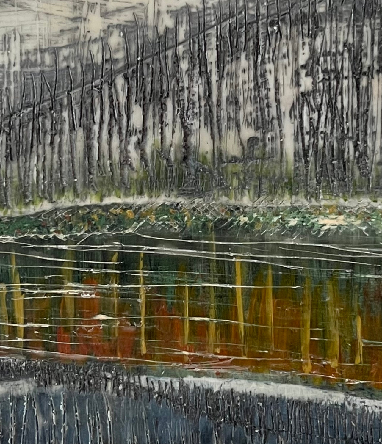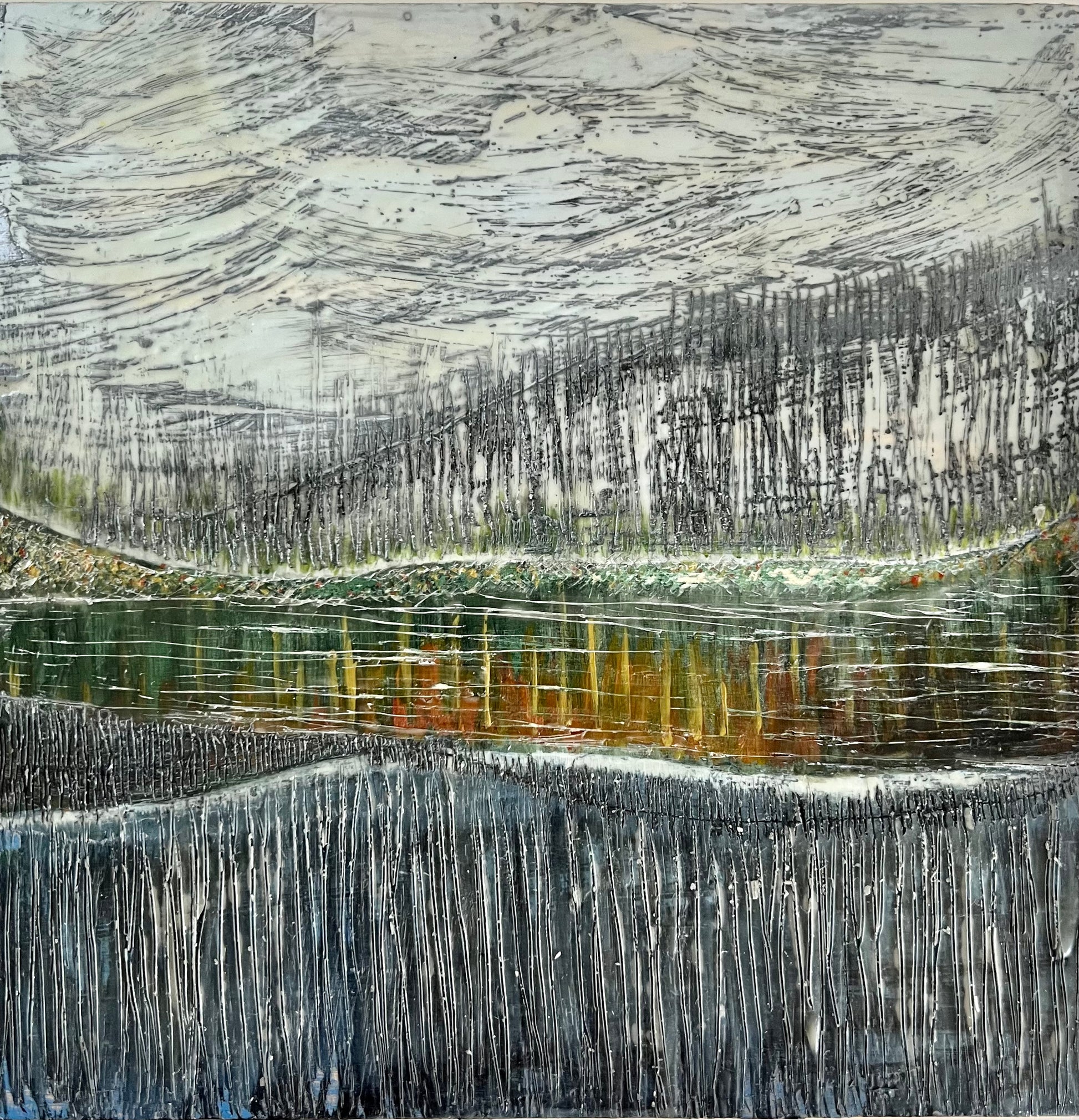 Original Painting: Acrylic, pastel, ink and wax on wood. 12" x 12" x .5"