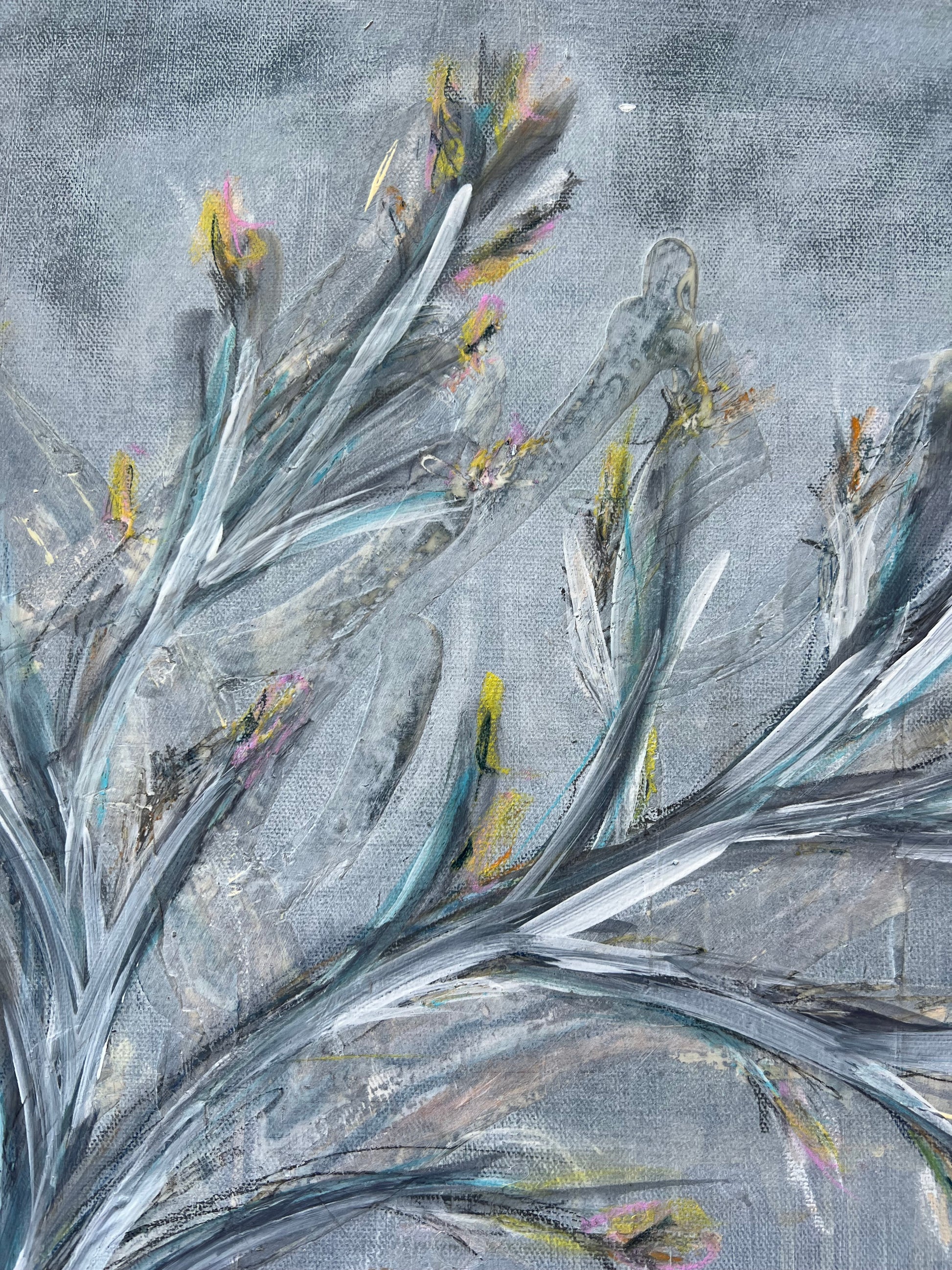 Original Artwork : Acrylic, pastel, ink, graphite and wax on canvas. 24" x 24" x 1.5"